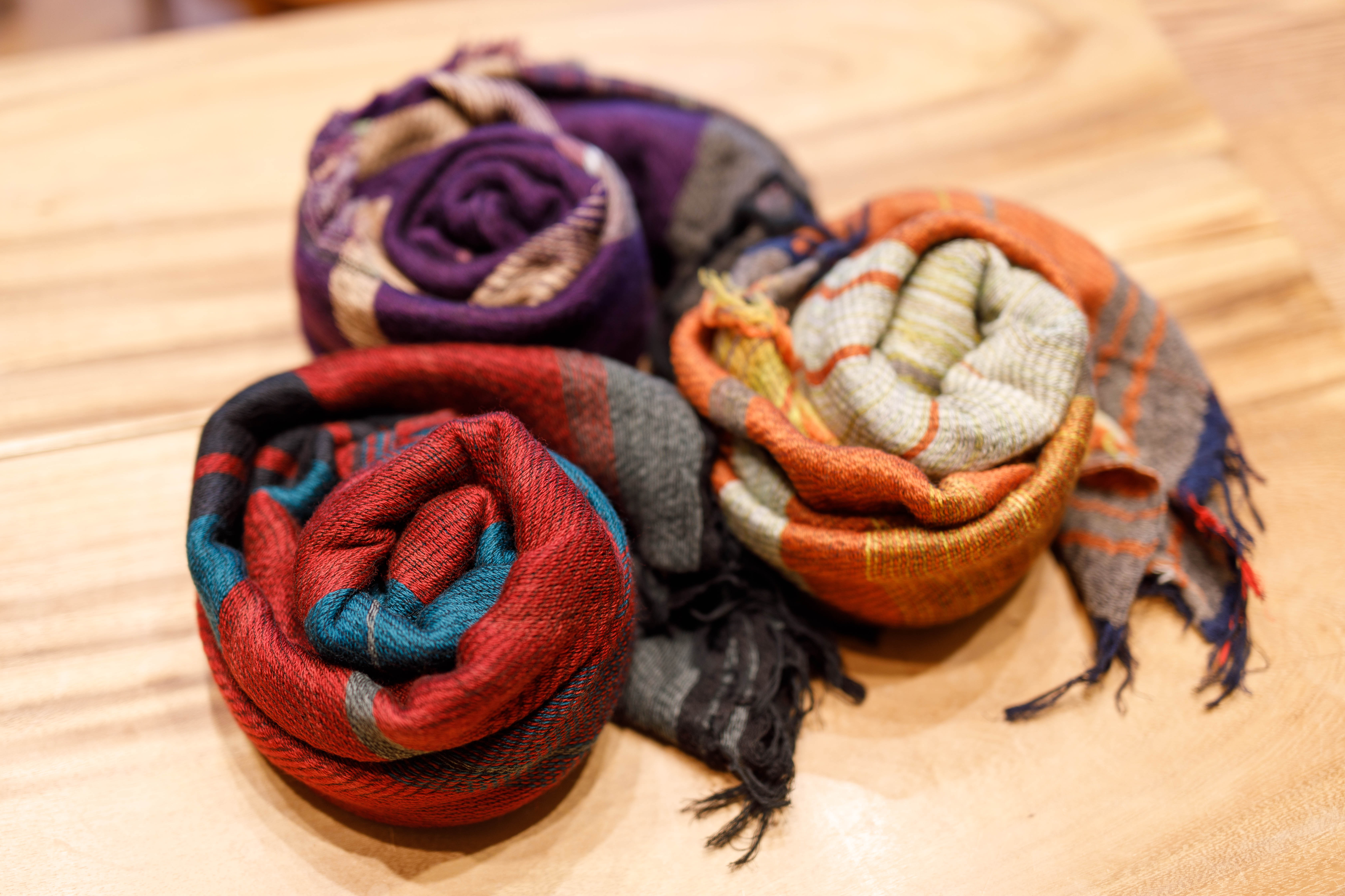 東北では3店舗しかお取り扱いのない『tamaki niime』のアイテムはすべて配色や柄が異なる1点物。手しごとの心地よさを体験してください。
