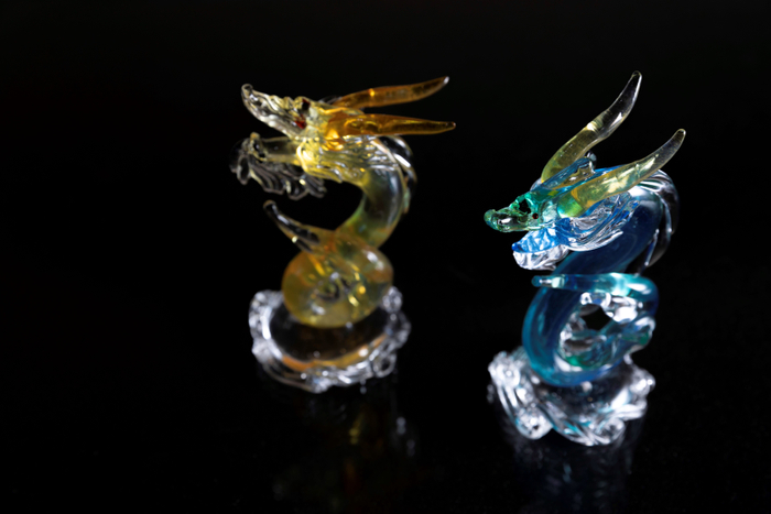 毎年大人気のガラスの鏡餅や、2024年の干支である辰(龍)のオブジェなど、自分用にも、贈り物にもぴったりのアイテムがずらりと並びます。手のひらサイズの作品が多いので、日常生活に縁起物を気軽に取り入れることができます。