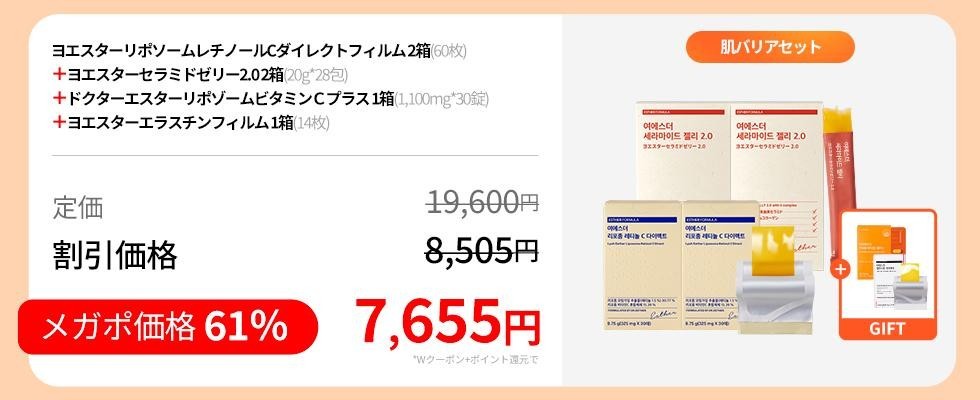 肌を乾燥から守る「肌バリアセット」が、メガポ限定で登場。日々のケアに取り入れやすい構成で、健康的な肌を目指す方にぴったりです。リポソームレチノールは毛穴ケアやくすみの目安として感じられる変化をサポート。セラミドゼリーは肌の潤い保持を助け、外部刺激からのダメージを和らげる手助けをします。セットはそれぞれ2箱ずつの構成。さらにメガポ限定で、ビタミンCプラスを1か月分プレゼント!秋の乾燥対策として、ぜひこの機会にお試しください。