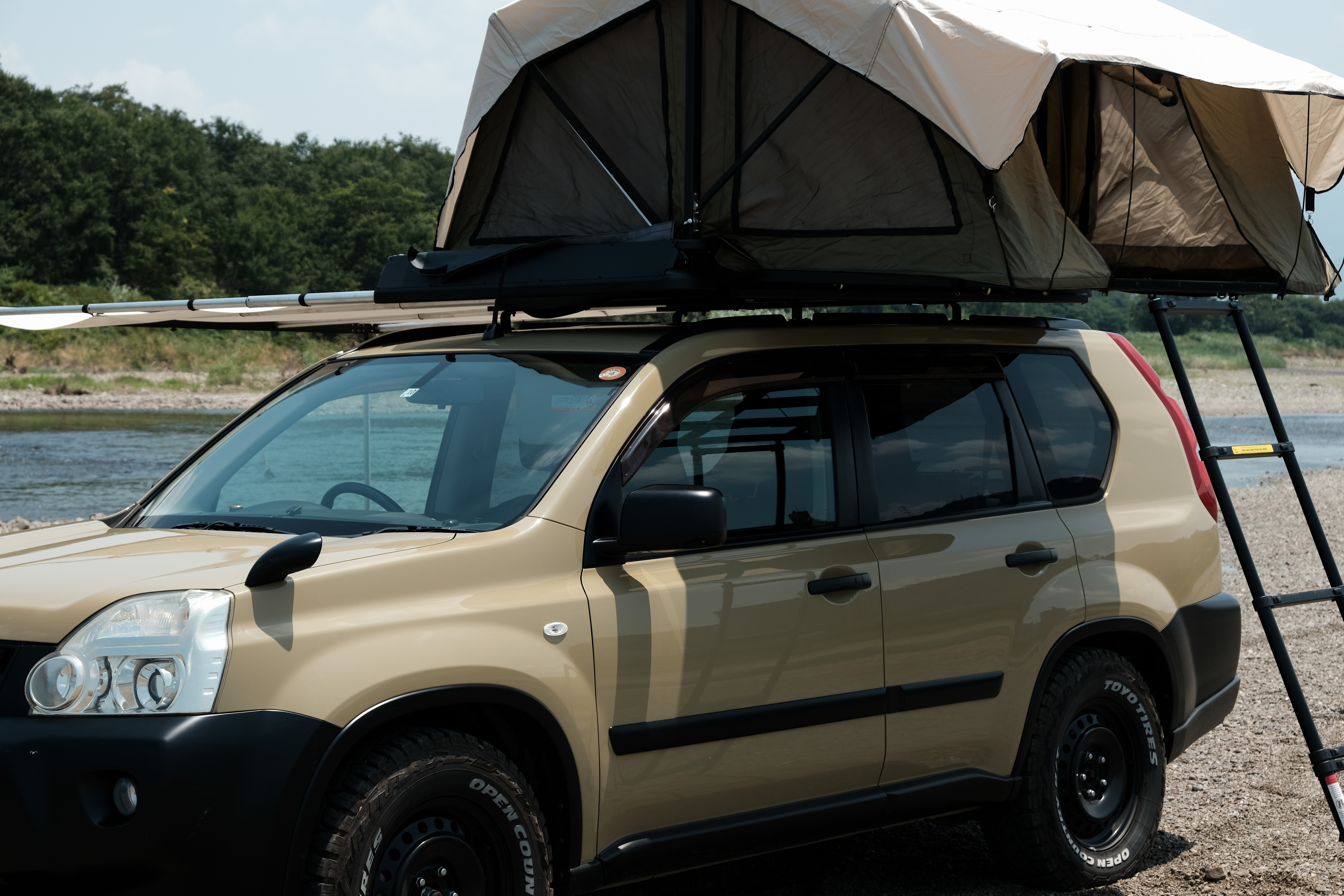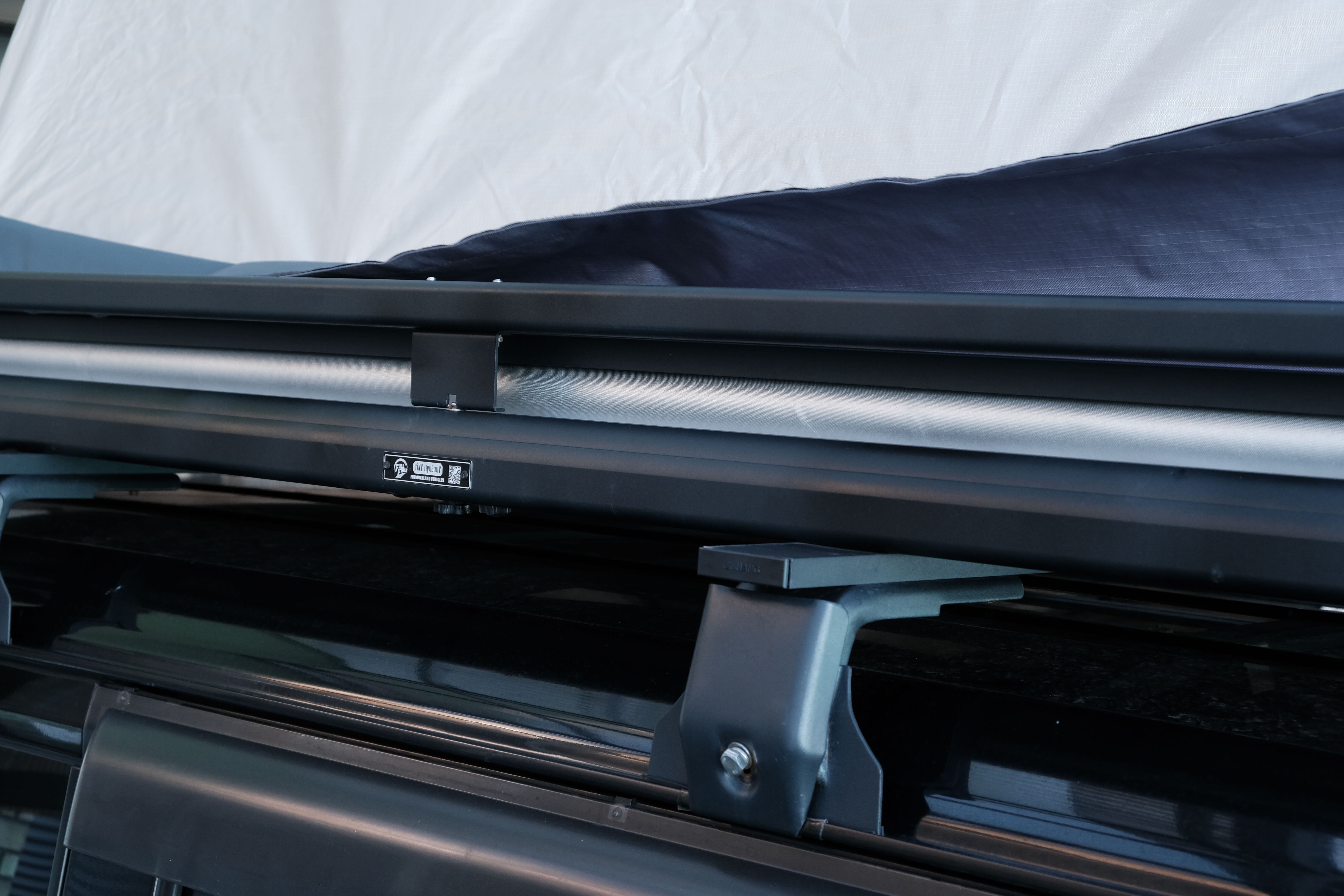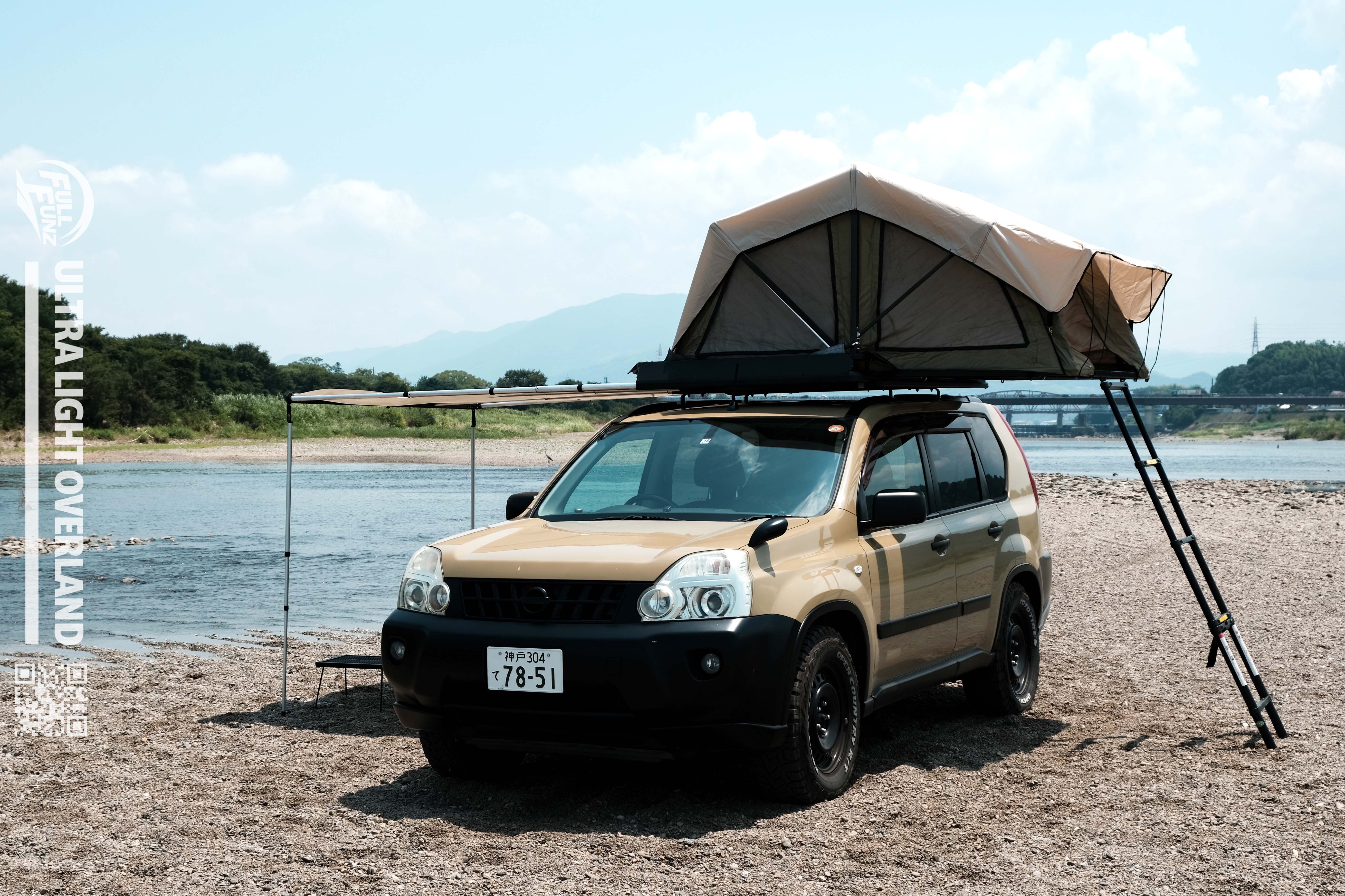 運ぶだけではなく、ルーフテント+サイドオーニングを格納した画期的なルーフラックとなっています。