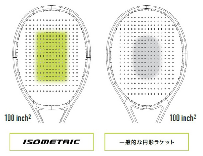 アイソメトリックとは、スウィートエリアを拡大させるヨネックス独自の形状理論。縦横のストリングの長さを均等に近づけることで、一般的な円形ラケットに比べ上下左右に7%※広いスウィートエリアを実現。