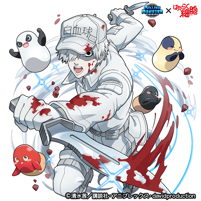 『はたらく細胞』の人気キャラ「白血球(好中球)」「赤血球」「キラーT細胞」「マクロファージ」「血小板」が獲得できるコラボ限定ガチャが登場します。