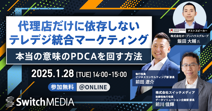 No.1※テレビCM出稿分析SaaS「TVAL(ティーバル)」を提供する株式会社スイッチメディア(本社:東京都港区、代表取締役社長:高山 俊治)は、株式会社オープンハウスグループと共に、2025年1月28日(火)に、オンラインセミナー「代理店だけに依存しないテレデジ統合マーケティング 本当の意味のPDCAを回す方法」を開催いたします。