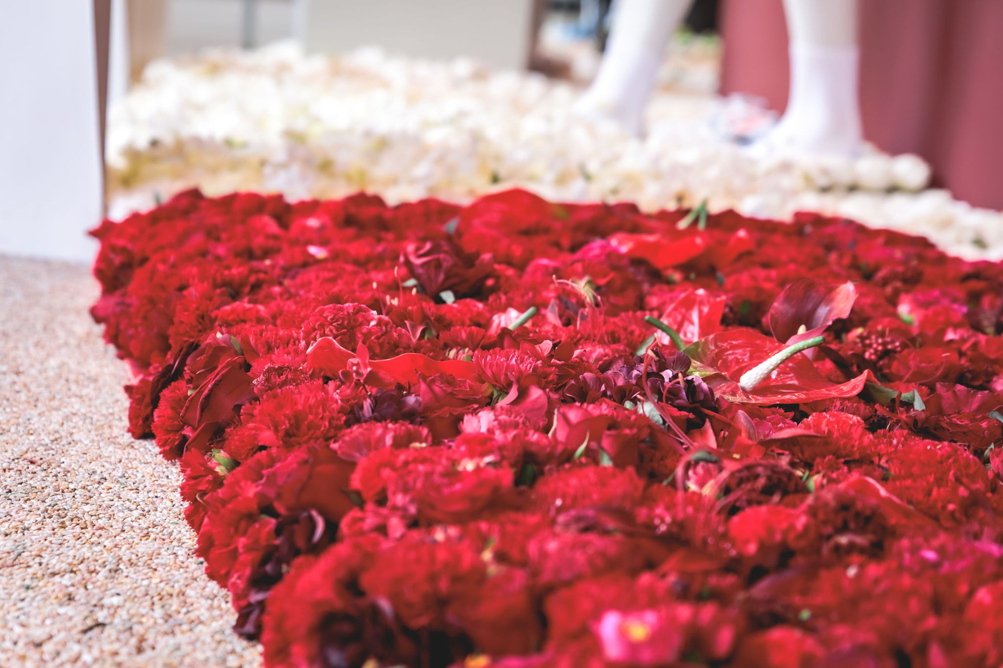 イタリア国旗「トリコローレ」の赤・白・緑をテーマに、花を用いた華やかな“花の絨毯”をパビリオン入り口に創出。文化的な象徴性と視覚的インパクトを両立させたデザインが、来場者に国際交流のメッセージを届けるとともに、日本の花文化の美しさと可能性を印象づけました。