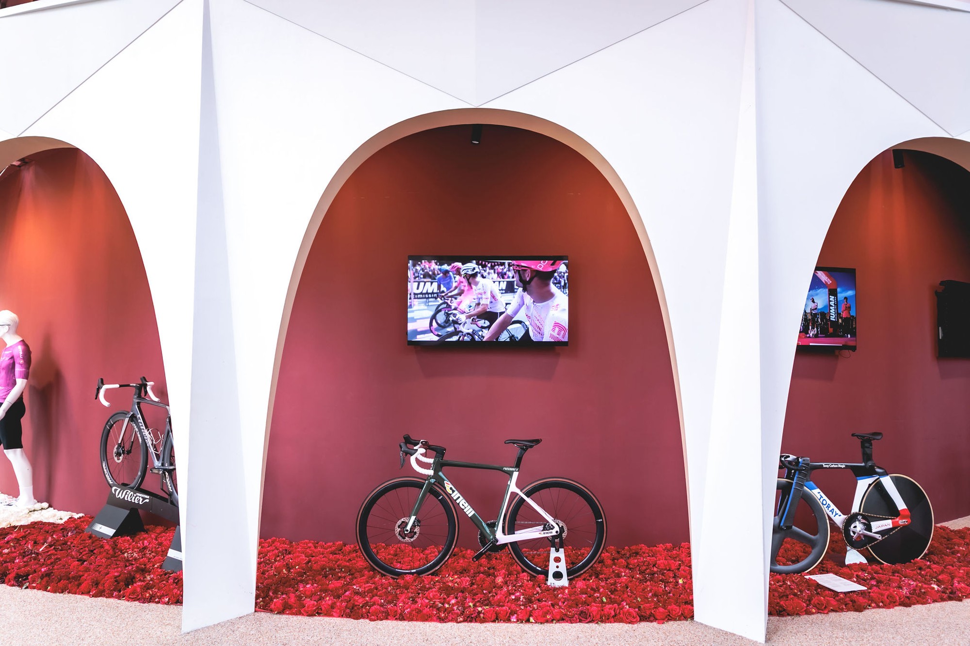 期間中、イタリア館では自転車文化の紹介を中心に、著名なレース「ジロ・デ・イタリア」などをPR。展示フロアには、国旗にちなんだ緑・白・赤の花々約3万5千本が敷き詰められ、来場者の注目を集めました。