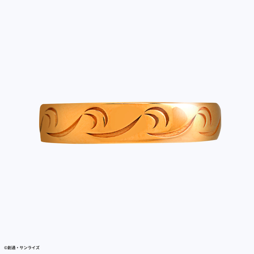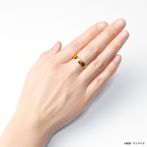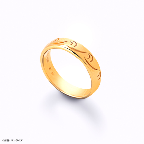 甲丸タイプのリングに柄を取り込み、内側にキャラクター名とイメージカラーストーンをセット。イエローゴールドコーティングを施しました。