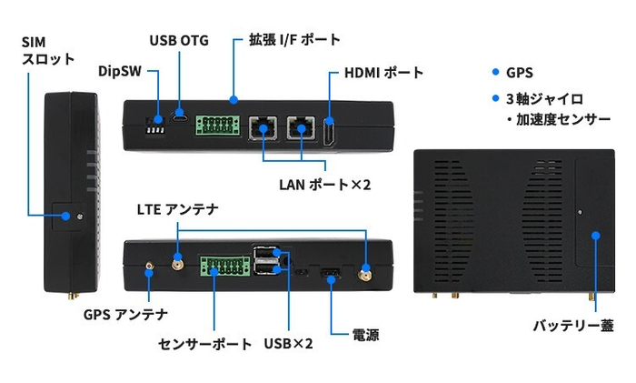 多彩なインターフェースと車載性能を備えた、「Linux搭載のIoTゲートウェイ」となります。当製品の特長は、以下となります。