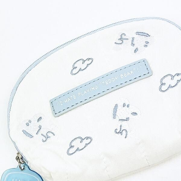 ぬいぐるみのように気持ちのいいキルティング生地に、刺繍のスヌーピーがちょこんと主張するデザイン。雲のモチーフも相まって、まるでスヌーピーがふわふわと空を飛んでいるようでほっこりします。