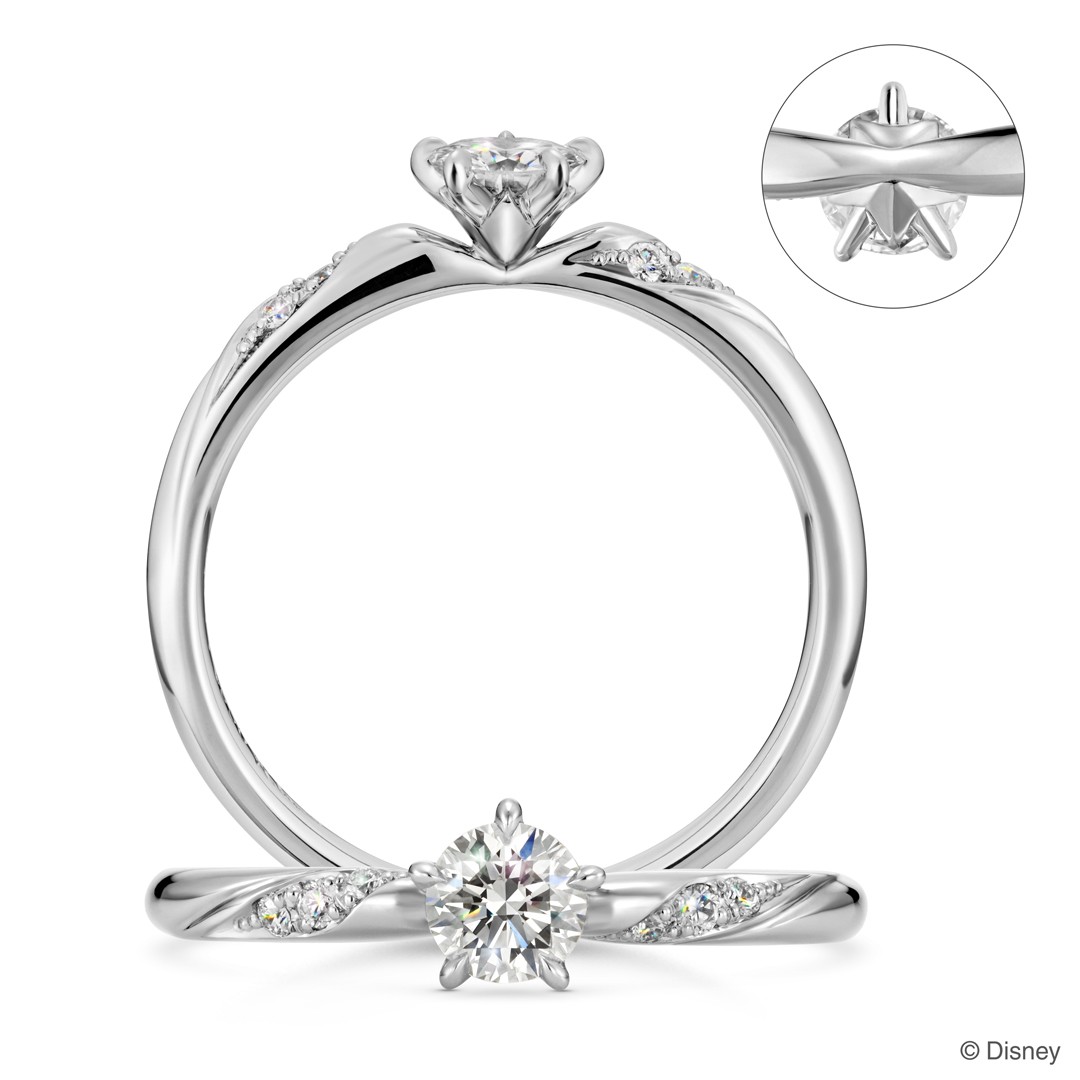 婚約指輪は5つの爪でダイヤモンドを支えており、石座を下から覗き込むと「星」のシルエットが見えるデザイン。