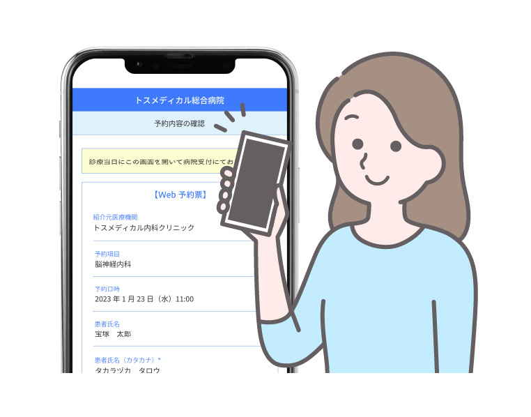 最終的には患者自身がスマートフォンで二次元コードを読み取って予約画面にアクセスして予約します。予約日時をその場で決める必要がないため、患者さんは余裕を持って予約できます。