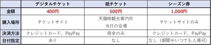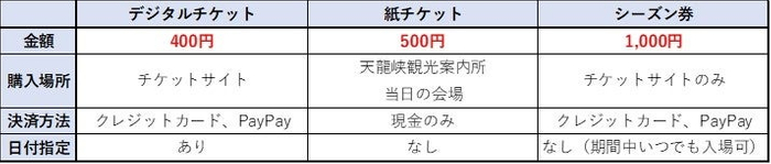 スマートフォンで購入・受付する「デジタルチケット」と、観光案内所や当日会場でも購入できる「紙チケット」がございます。