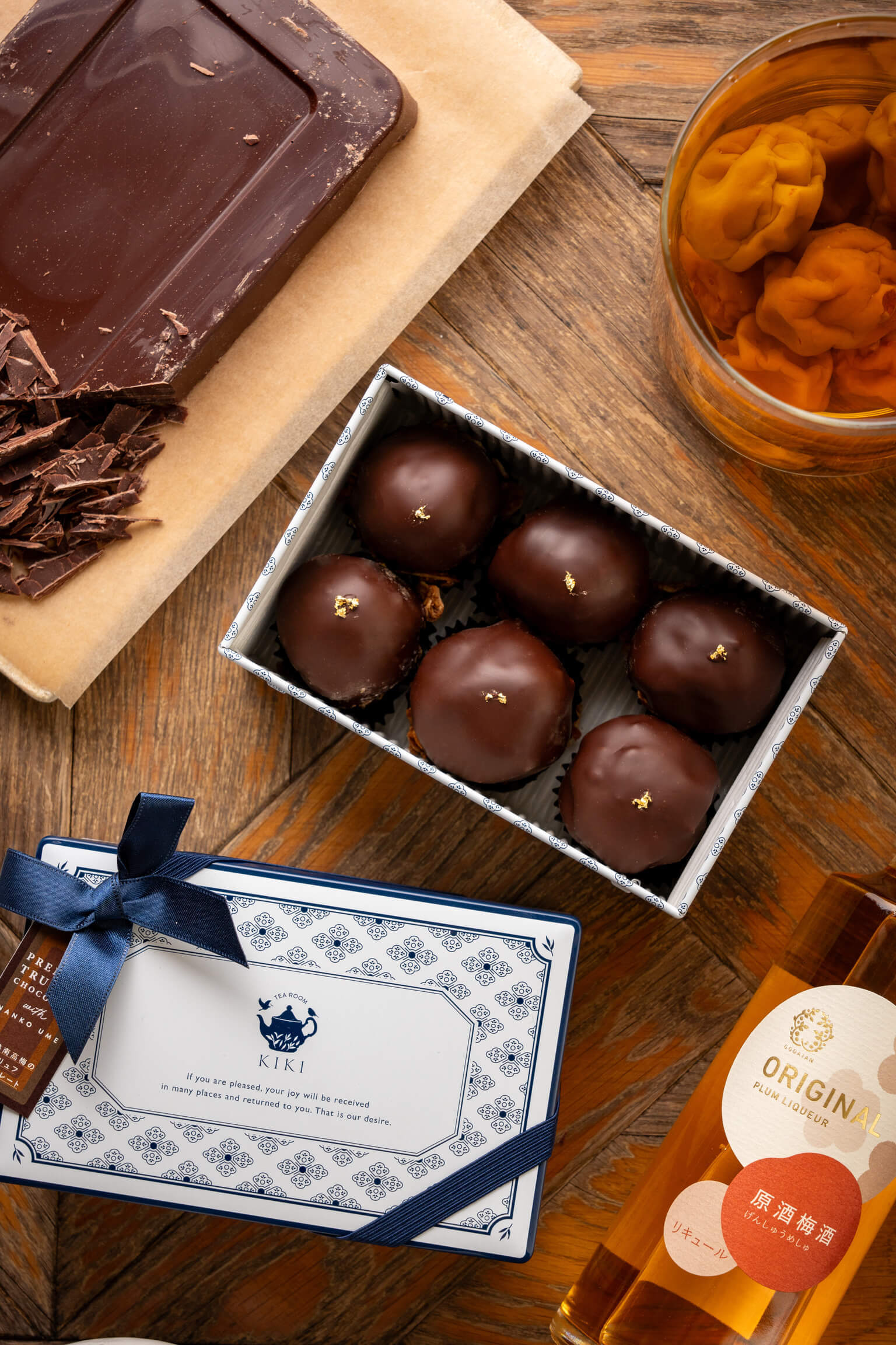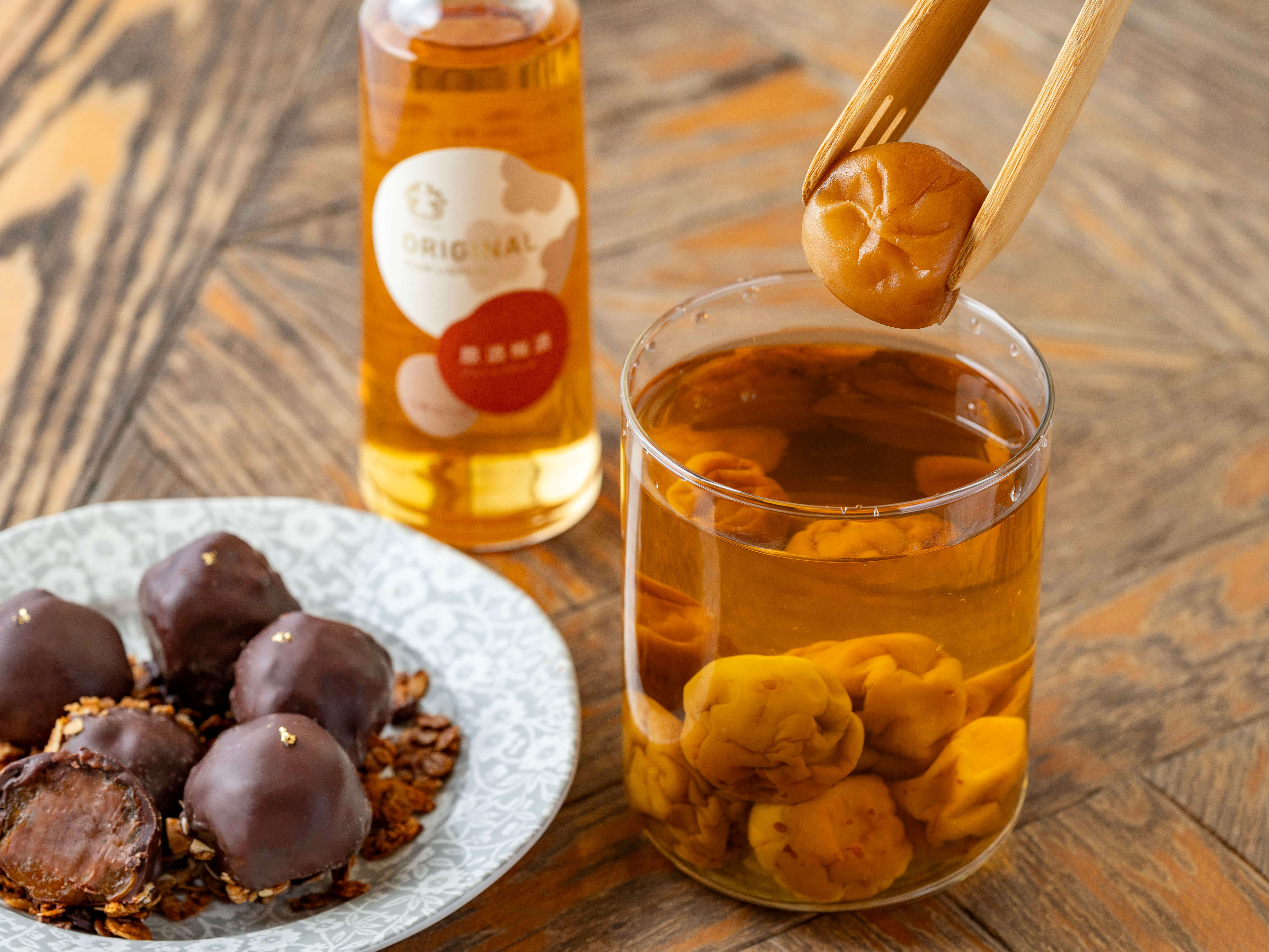 梅を引き立てる上質なエクアドル産カカオのチョコレートを提供。