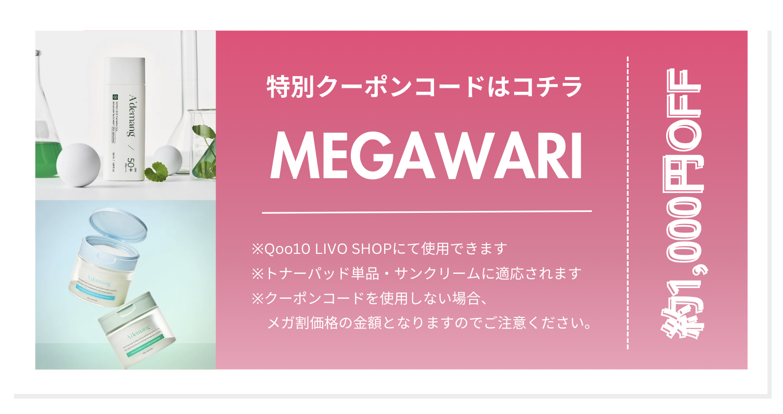 『メガ割×めっちゃ割』特別価格にて対象商品を購入するにはQoo10 LIVO SHOPにて秘密のクーポンコードを入れるだけ!