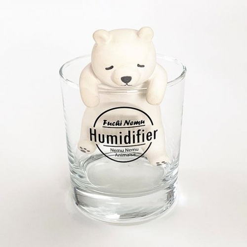 ガラスのコップの中に入りこんだくるり。オブジェのようで見ためにもカワイイのですが、実はコレ、加湿器なんです。