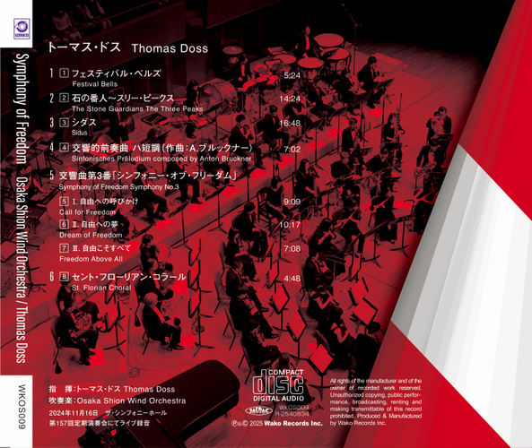 日本で最も長い歴史と伝統を誇る交響吹奏楽団のOsaka Shion Wind Orchestraを有する公益社団法人 大阪市音楽団(本社:大阪市住之江区/理事長:石井徹哉)は、オーストリアの作曲家トーマス・ドスが指揮を務めたライヴ録音CDのリリースを決定しました。