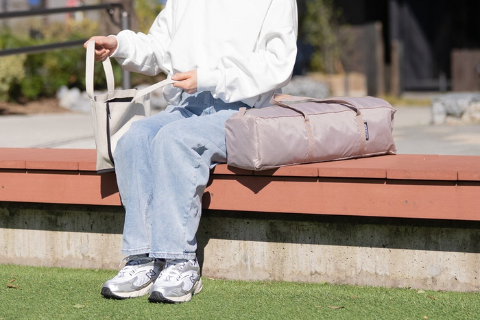 ブランド史上、最もコンパクトに持ち運べる設計を追求しました。これまでの「シェードはかさばる」 という常識を覆し、自転車のカゴや肩掛けで軽快に持ち運べるサイズを実現。公共交通機関や徒歩での移動も妨げないため、車がない日の公園遊びもぐっと身近になります。