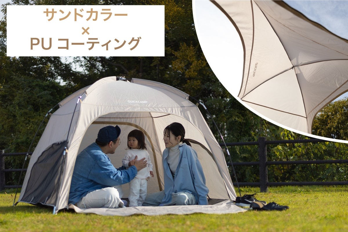 遮熱性に優れ、真夏の厳しい日光を遮る「ブラックコーティング」は、UV カット率99%以上、UPF50+と最高水準のスペック。一方で、あえて日差しを適度に取り込める「PUコーティング」は、肌寒い季節も暖かく過ごせ、通年で活躍します。夏の外遊び重視か、四季を通じて公園で使うか。自分のスタイルに最適な一張りが選べます。