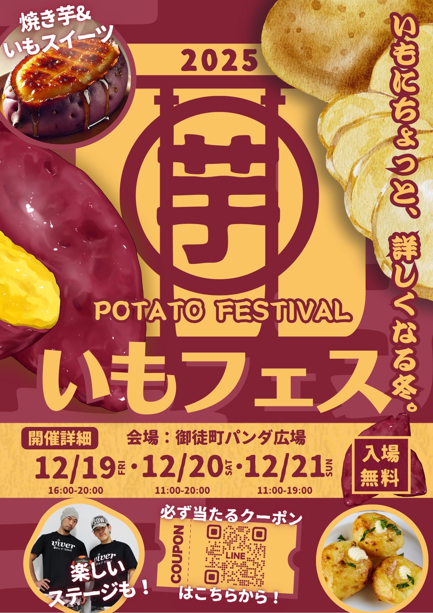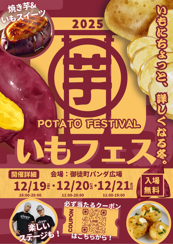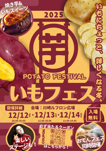 2025年12月12日(金)~14日(日)に、かわさきフェス広場にて【いもフェスin川崎】・12月19日(金)~21日(日)に、おかちまちパンダ広場にて【いもフェスin御徒町】を開催いたします。