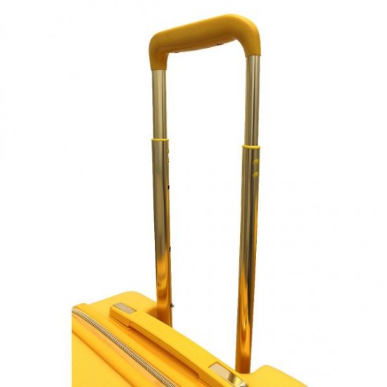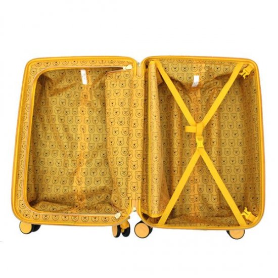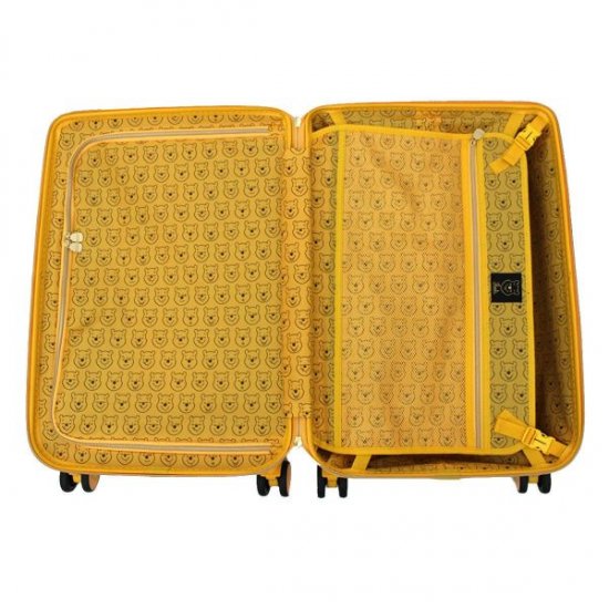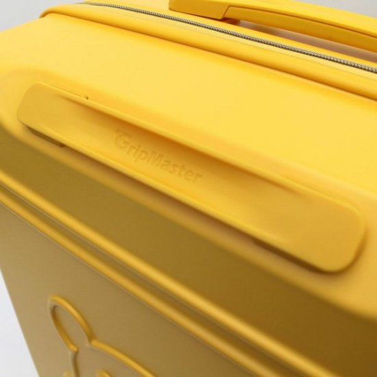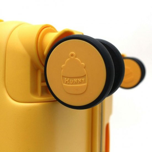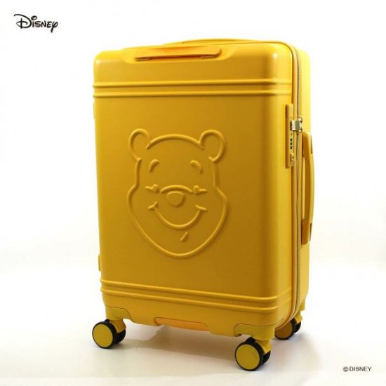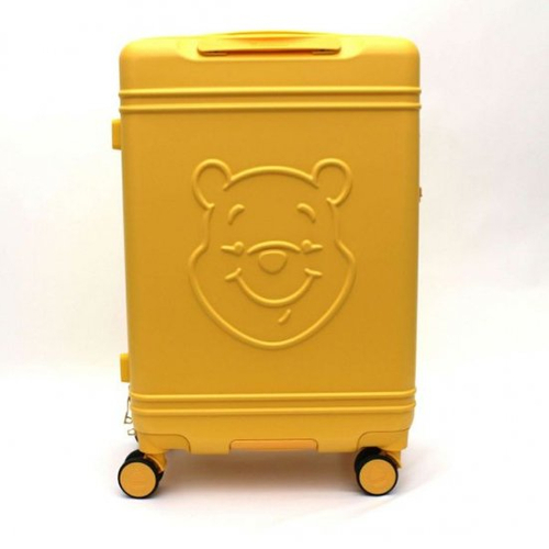 シンプルイエローのボディにプーさんのエンボス加工がオトナカワイイ♪はちみつ探しの旅に行きたくなるプーさんスーツケース。