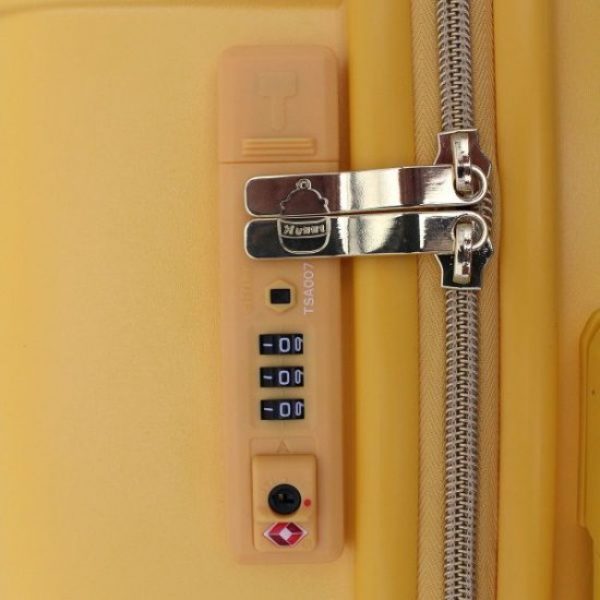 はちみつ探しの旅に行きたくなる、プーさんスーツケースがこちらです。ボディーはシンプルなイエローカラー、イエローと言っても落ち着いているので大人も使いやすいスーツケースとなっています。素材は軽くて丈夫なPC(ポリカーボネート)とABS樹脂で作られており、国内・海外であなたのトラベル仲間になってくれることでしょう。