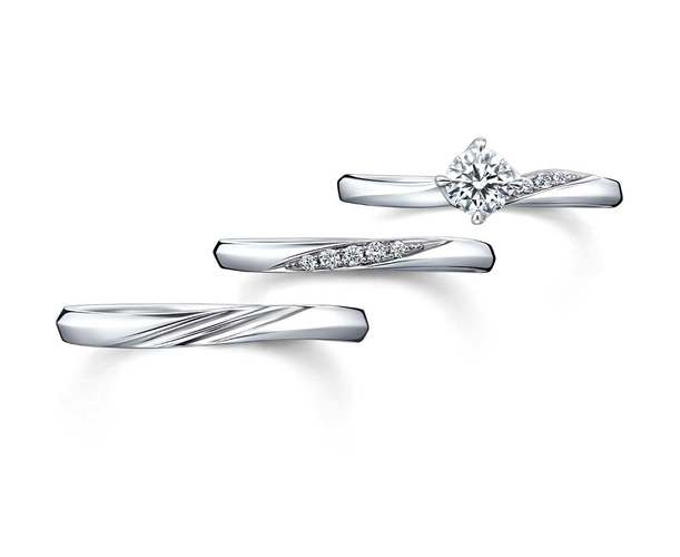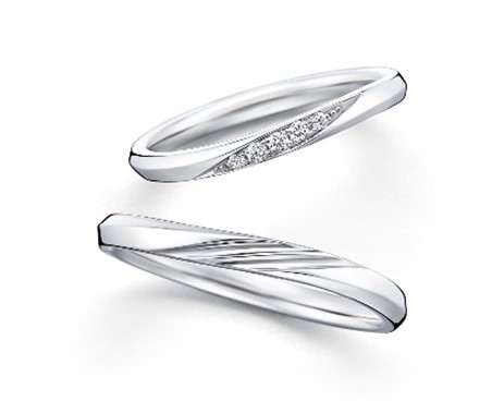 美しい蝶がふわりと軽やかに指にとまるような、極上の着け心地を叶えたセットリング。重なりあってシンクロする流線型の美しい輝きと、幸せを運ぶ青い蝶のストーリーが、おふたりを輝かしい未来へと導いてくれます。