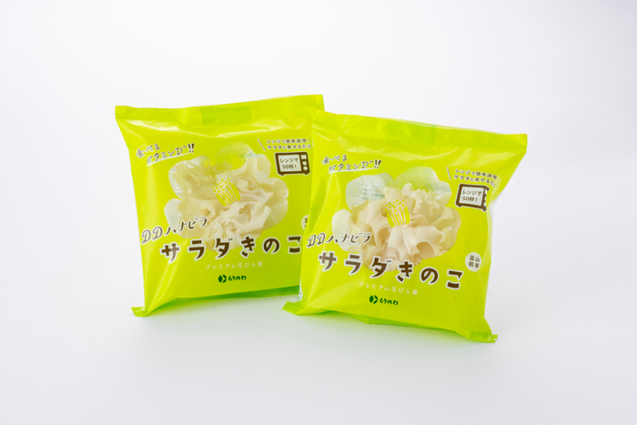 プレミアム花びら茸を使いやすくカットしました。洗浄済みなので、パッケージのままレンジで50秒加熱するだけで、手軽に食べられるのが特徴です。いつものサラダや麺類にトッピングしてすぐに食べられます。