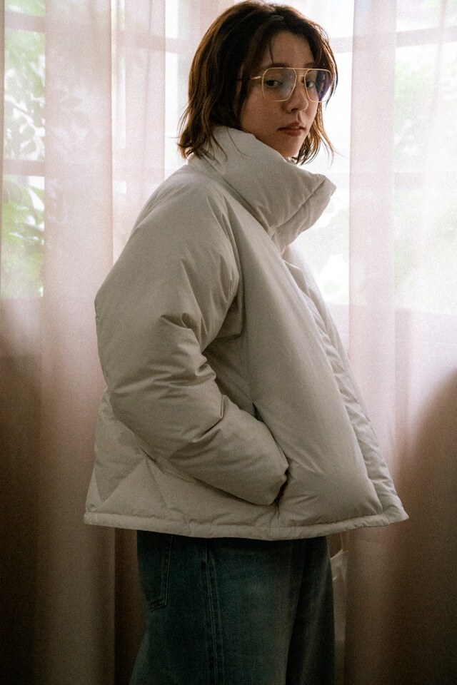 すっきりとしたシルエットはそのままに、上質な生地の質感を生かしながら、軽快な着用感を実現。羽毛は従来のGREEN DOWNから、希少な純国産「JAPAN DUCK」へ変更。適正量に調整したダウンと新しい生地構造により、より軽く、より暖かいバランスを追求しました。スタンドカラーはボリュームを抑え、折り返してニュアンスをつけられる仕様にリニューアルしています。