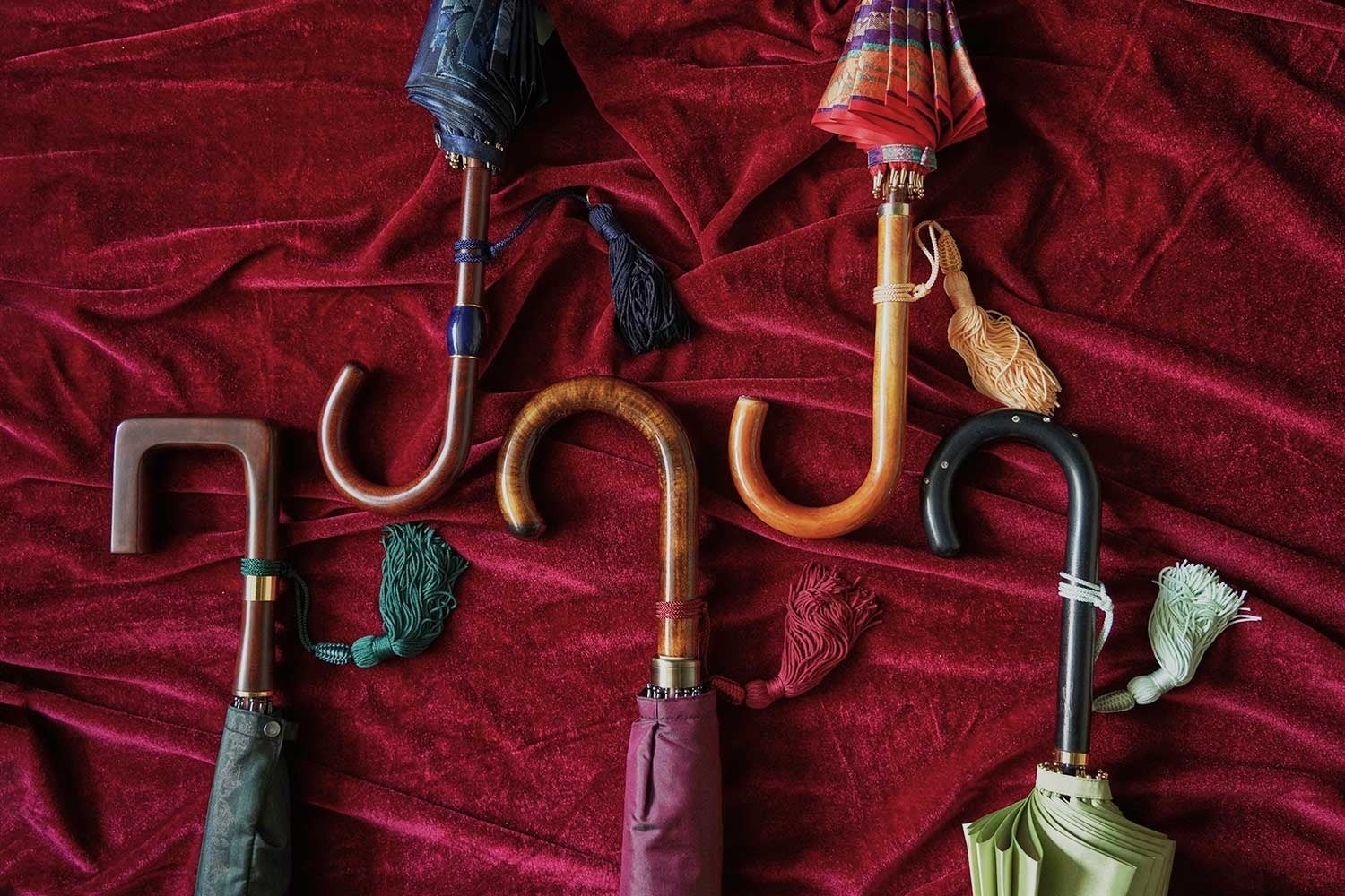楓は耐久性と加工のしやすさを兼ね備えていることから、傘の手元に最も多く用いられてきた素材です。今回ご紹介するワンランク上の楓製ハンドルは、使用する材質や塗料、加工工程に至るまで従来品とは異なる特別な仕上がりとなっています。原材料の枯渇や作り手が途絶えたことにより、現在では生産できない一点物ばかりを、約40本ご用意いたしました。ぜひ実際にお手に取ってご覧いただき、お好みの一本をじっくりとお選びください。時代を超えた、世界にひとつだけの傘にお仕立ていたします。