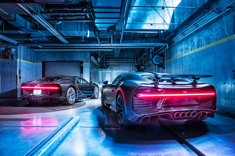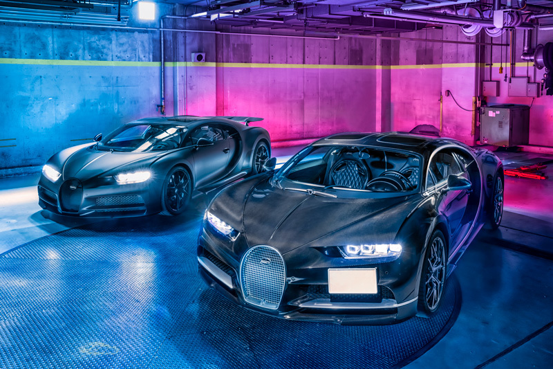 2台のノワールがブガッティの伝説と世界観を表現しています。