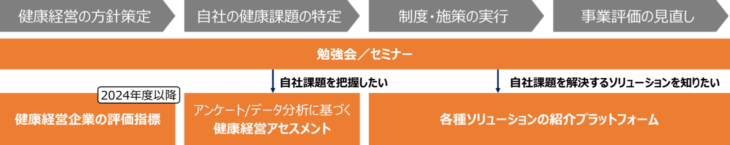 経営層、人事・健保実務担当者向けに、健康経営に関するリテラシー、スキルを高めるための勉強会/セミナーを開催します。