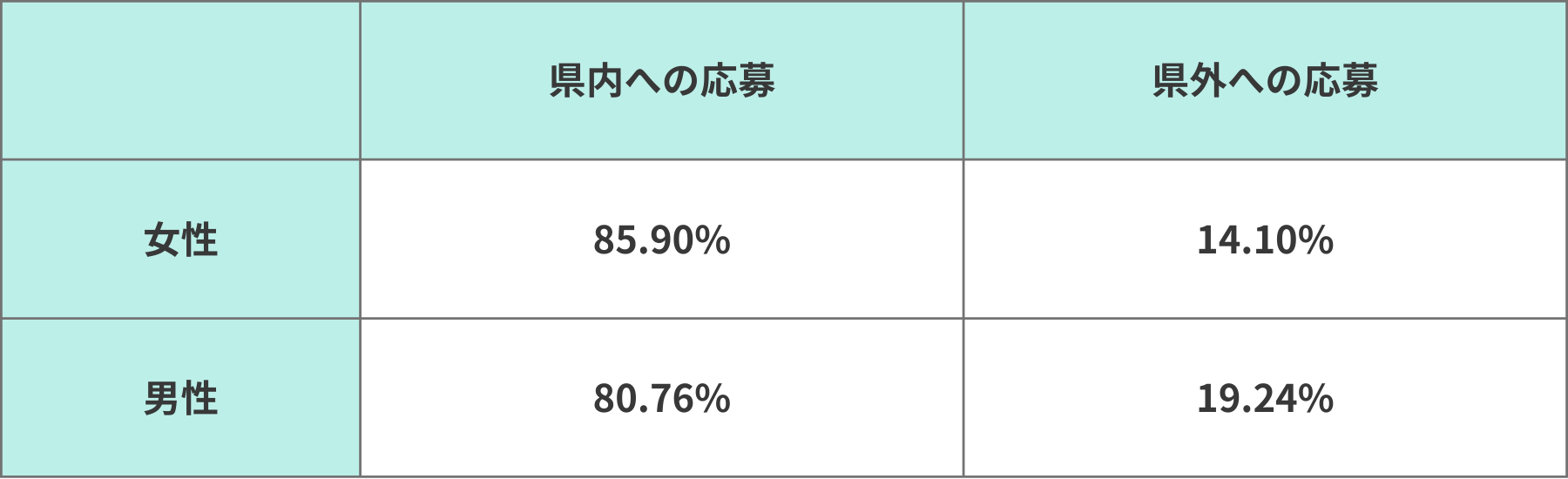 一方で、遠方地域(通勤圏外)からの応募はわずか7.40%にとどまり、求職者の圧倒的な「地元志向」が浮き彫りとなりました。