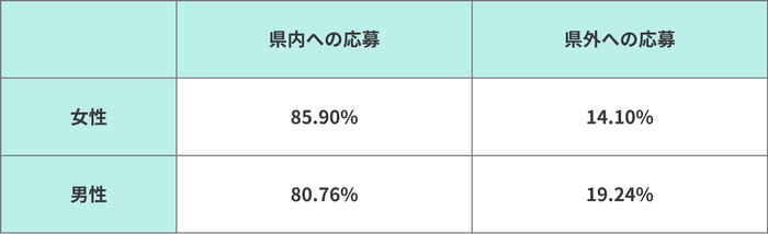 女性の県内応募率は85.90%に達しており、男性(80.76%)を約5ポイント上回っています。