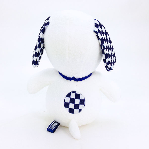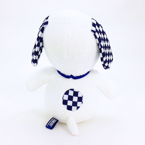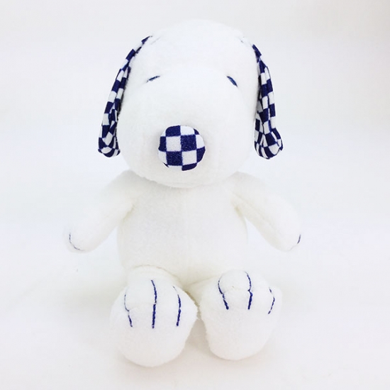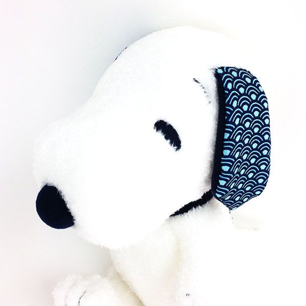 青海波模様のスヌーピーです。耳の部分と足の裏に、さりげなく模様が入っていますね。サイズは21×16×17cm。手触りも気持ちいいんですよ。