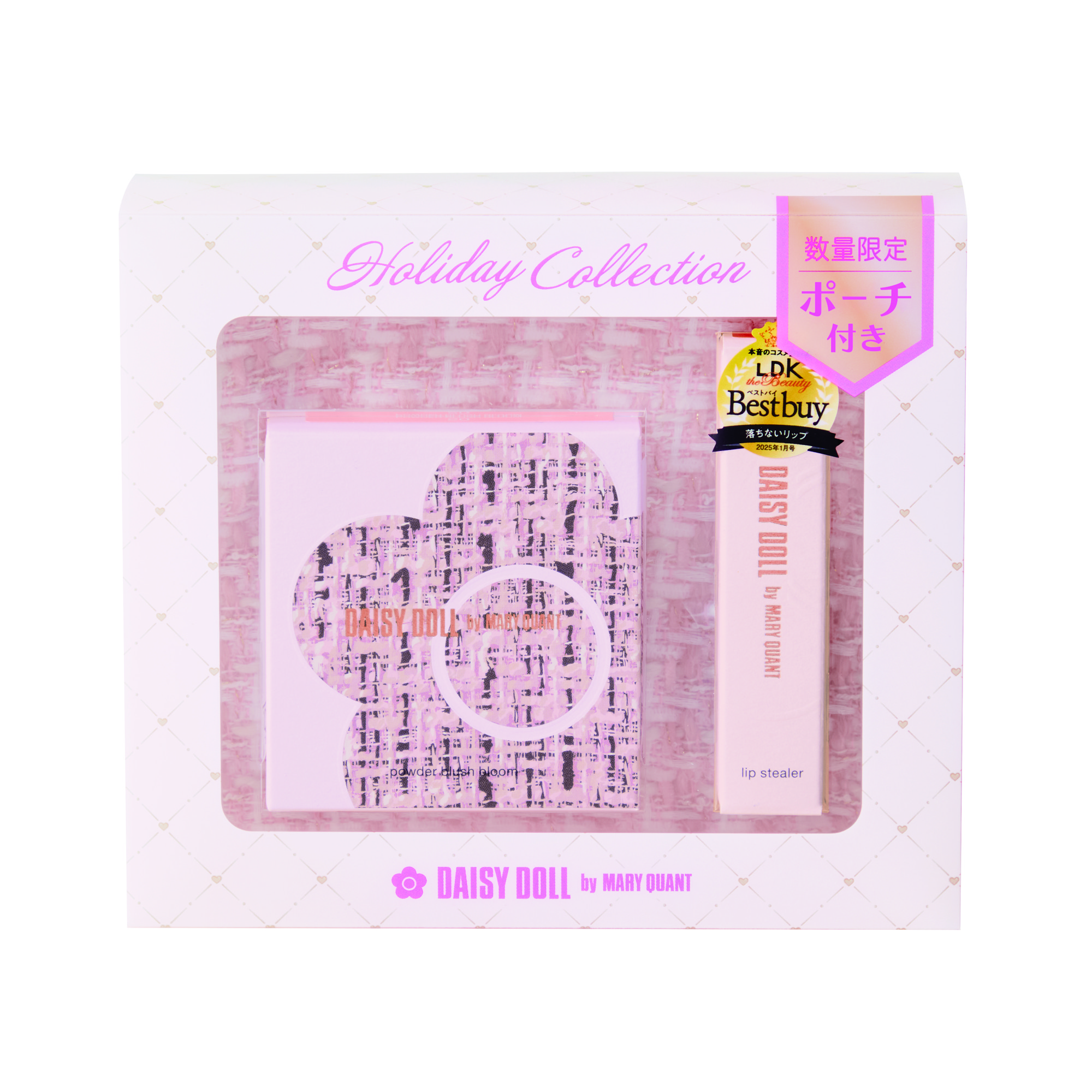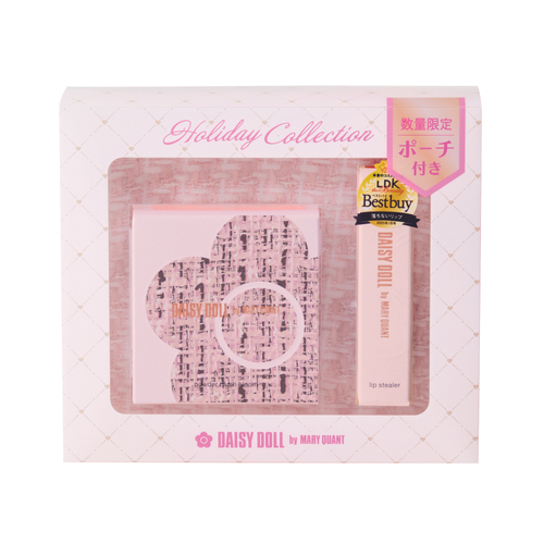 デイジードールの人気アイテムの特別セットをホリデーシーズン限定で発売!お出かけやパーティーにぴったりなツヤ感メイクアイテムを厳選!普段使いもOKな儚げニュアンスカラーアイテムと限定のオリジナルポーチもついた特別なコレクションです。
