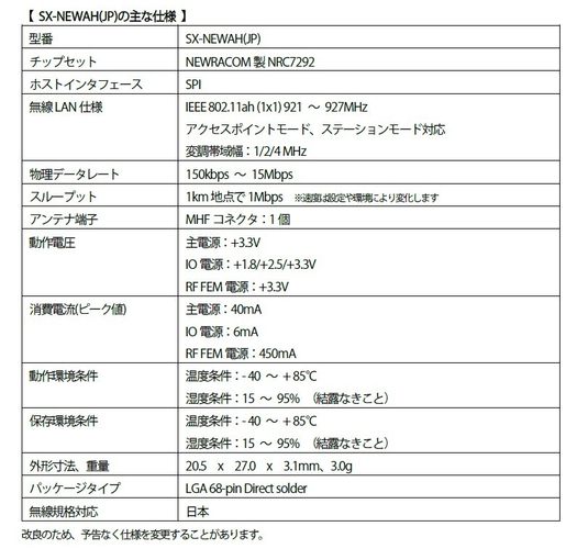 無線LANモジュール「SX-NEWAH(JP)」