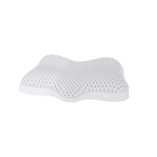 同時に、首のカーブにフィットするネックサポートで、後頭部だけでなく首部分をしっかり支え、体圧分散力をさらに高めます。また首の付け根部分を埋めるベロがついており、隙間が空いて負担がかかりやすい部分までしっかりサポートします。仰向け寝だけでなく横向き寝もしやすいよう両サイドは高めの設計。この超立体構造でまるでオーダーメイドのようなフィット感ある寝心地を実現しました。