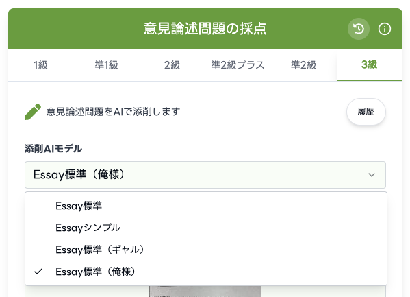 ライティング採点画面の「添削AIモデル」のプルダウンから「俺様ティーチャー」を選択するだけで、どなたでも無料でご利用いただけます。
