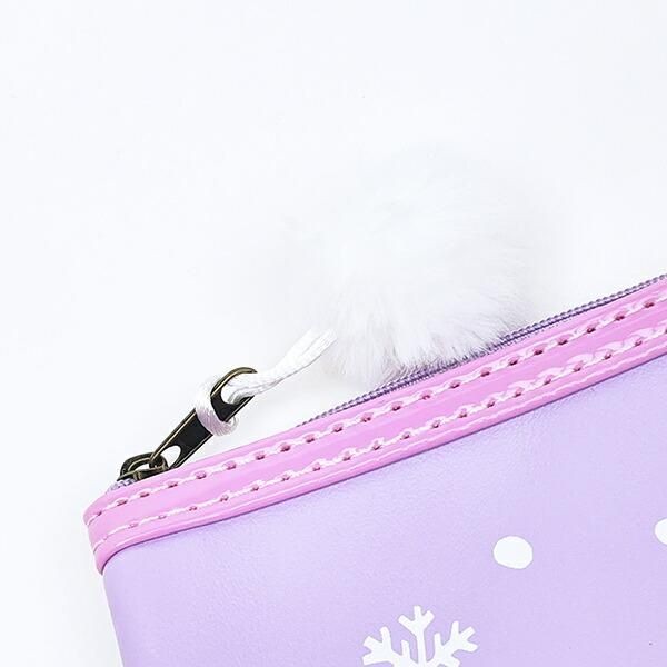 ちゃんとこちらも雪玉のところがふわふわのシープボアになっています。お色は優しいパステルパープル、ピンクでかわいすぎず、ナチュラルにかわいい印象です。よく見るとこちらには引手にファーのポンポンが付いています。ポーチのデザインに合わせた感じがどこからどこまでも愛らしすぎる、、!サイズ:13cm×17cm×1cm 素材:合成皮革