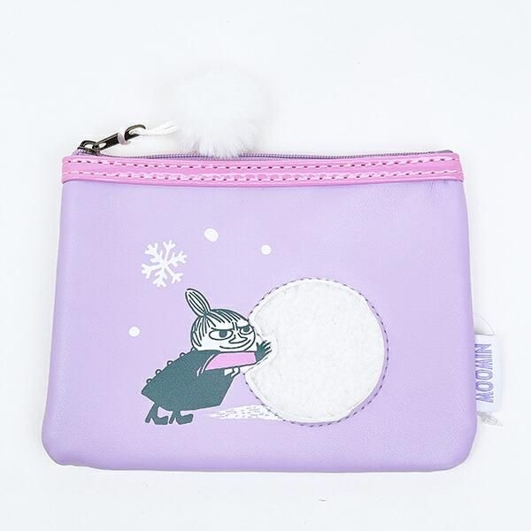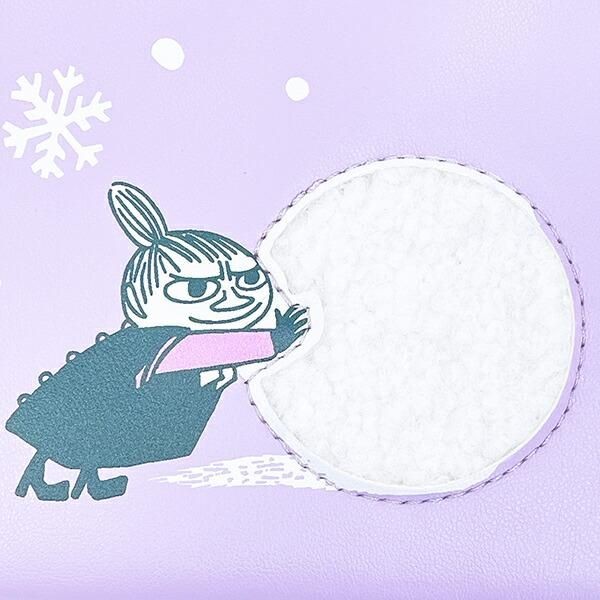 大きな雪玉を転がすやんちゃなリトルミイの姿にほっこり。ふわふわのシープボアで雪玉をイメージした面白心あふれるポーチです。。パープルのリボンタッセルがアクセントになってナチュラルでおしゃれな印象です。サイズ:14cm×14cm×1.5cm 素材:ポリエステル