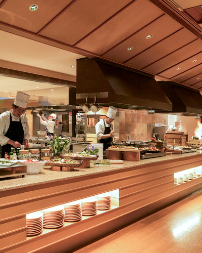 例えば、オーダービュッフェレストランでは、お客様からオーダーを受けてから調理スタッフが目の前でお作りし、作り立てを「ひとさら」で個別提供しています。そこでは、お客様と料理人との対話が生まれ、裏方と思われがちな料理スタッフもお客様の目の前で料理・サービスするアーティストに変わり、仕事への意欲向上にもつながっています。