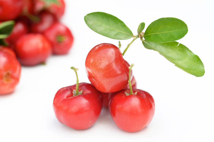 アセロラはビタミンCの含有量がレモンの38倍にもなる「1700mg」と果実の中ではダントツNo.1。またアセロラのビタミンCは壊れにくく吸収率が高いとも言われています。さらに日差しが強ければ強いほど、自分を守るために抗酸化物質をつくるため、ビタミンC以外にもβ-カロチン、ビタミンEなどの成分や、アントシアニンもバランスよく含んでいるスーパーフルーツです。