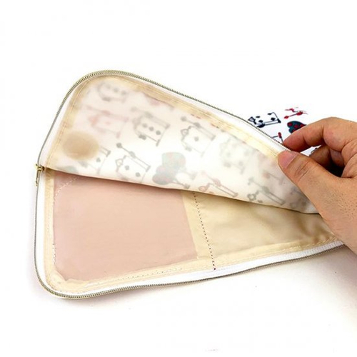 こちらの2つ折りのポーチは、ティッシュポーチとしても使えます。さらに、広げるとマスクなども入れられるサイズ感♪