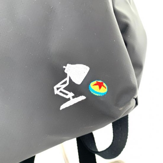 こちらはブラックカラーを基調とした大人も持ちやすいリュック。右下にはさりげなくピクサーボールとピクサーランプがワンポイントに♪