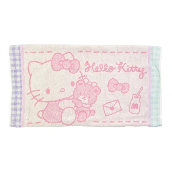 こちらがハローキティのふわふわタオル枕カバーです。レトロなキティちゃんとサイドのチェック柄がなんだか懐かしくて見ているだけでもとっても癒される、、、!