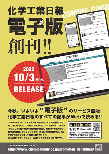 化学工業日報では、新聞、PDF版に加えて、テキストスタイルと紙面ビューワーで記事を読める電子版を創刊します。