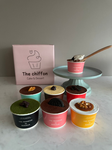 お客様からの熱い要望に応え、レストランで提供していた人気のシフォンケーキを専門で扱う店舗をオープン。健康と安全に配慮した無添加、保存料・着色料・ベーキングパウダー不使用のシフォンケーキは、味わい深さとヘルシーさを兼ね備えています。京都宇治森半の宇治抹茶を100%使用した「宇治抹茶」や「カカオチョコ」等、フレーバーは全6種類。見た目も鮮やかで、すべての人に愛される手土産として、また日々のちょっとしたご褒美としてお楽しみいただけます。