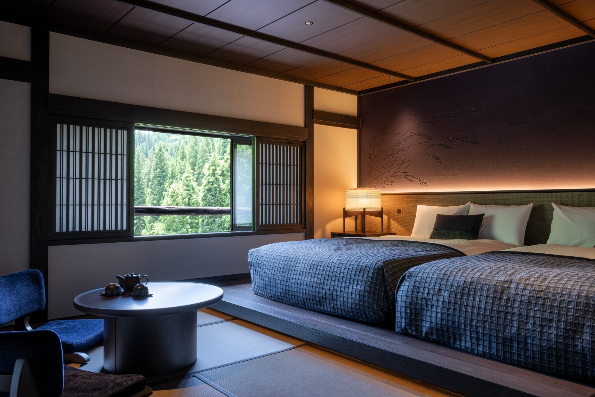 客室をはじめ、玄関・ロビーなど、施設全体を和モダンに刷新。雪国の建築ならではの外観を活かしつつ、国内だけでなくインバウンドも念頭に、これまで以上に南魚沼の春夏秋冬を五感で楽しんでいただける、魅力的なお宿に生まれ変わりました。