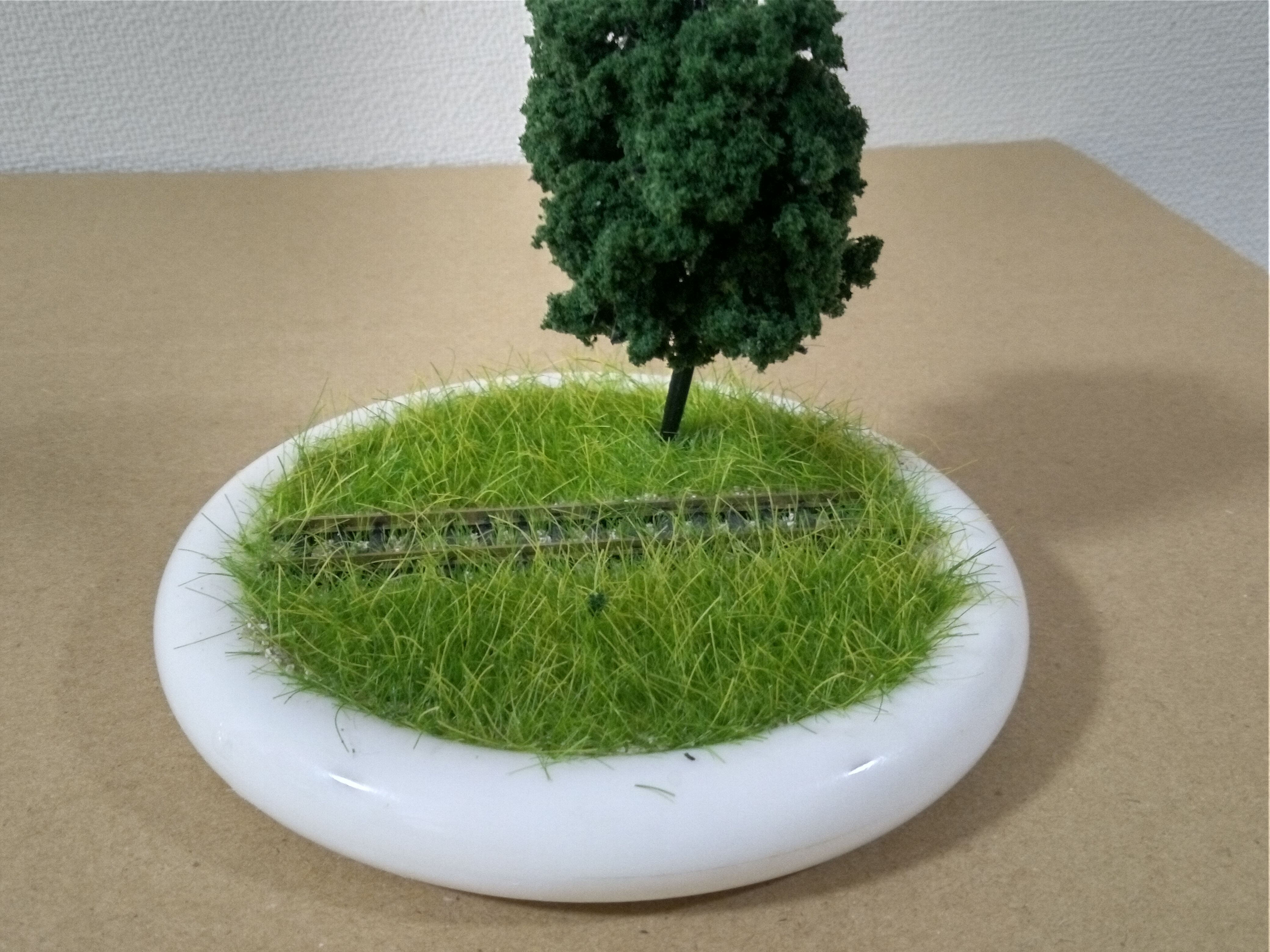 京阪電車で使用していた吊り革の持ち手部分をミニチュアの木や草を配置して 自分だけの「盆ラマ」を作ろう!
