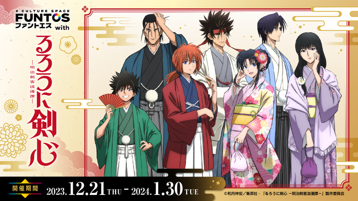 株式会社ソユーは、コラボレーションスペース事業「ファントエス」最新弾として、TVアニメ「るろうに剣心 -明治剣客浪漫譚-」と全国のファントエスおよびオンラインショップにて2023年12月21日(木)~2024年1月30日(火)の期間限定で開催中です。
