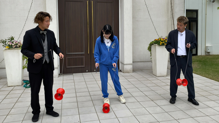 ちほ&せめる。チームは、王道の「ハットジャグリング」&「ダイススタッキング」に挑戦も、仕組みが分からず四苦八苦・・・